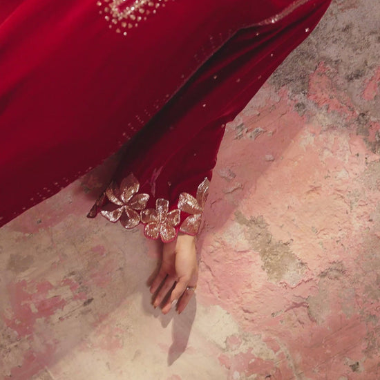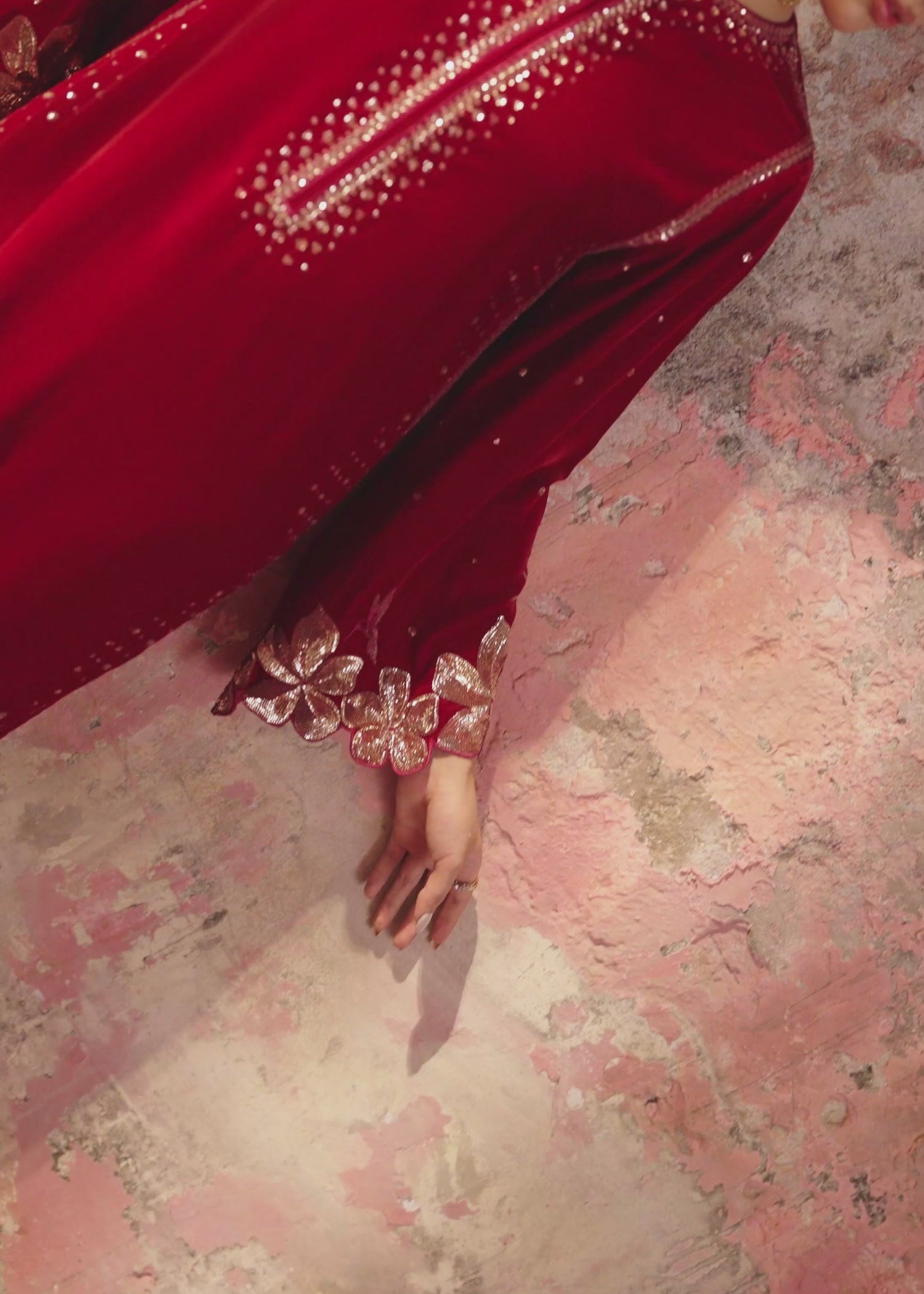 Elevate your festive wardrobe with this luxurious long red velvet shirt that exudes opulence and grace. The front and sleeves are adorned with delicate sequin embroidery, adding just the right amount of shimmer and sophistication. The silhouette flows effortlessly, offering both comfort and elegance. Paired with a plain matching trouser, this ensemble strikes the perfect balance between understated charm and festive glamour.