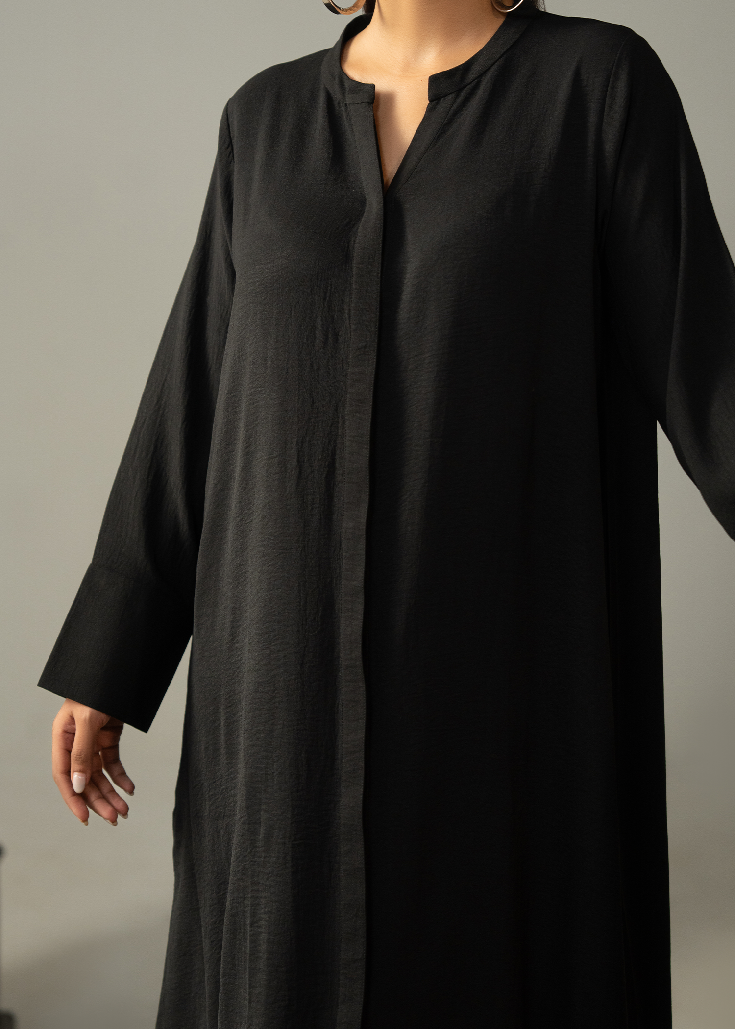 Elevate your everyday look with this chic co-ord set in lightweight crush fabric. Featuring a long button-down shirt paired with sleek straight-cut trousers for an effortless charm with a modern edge.